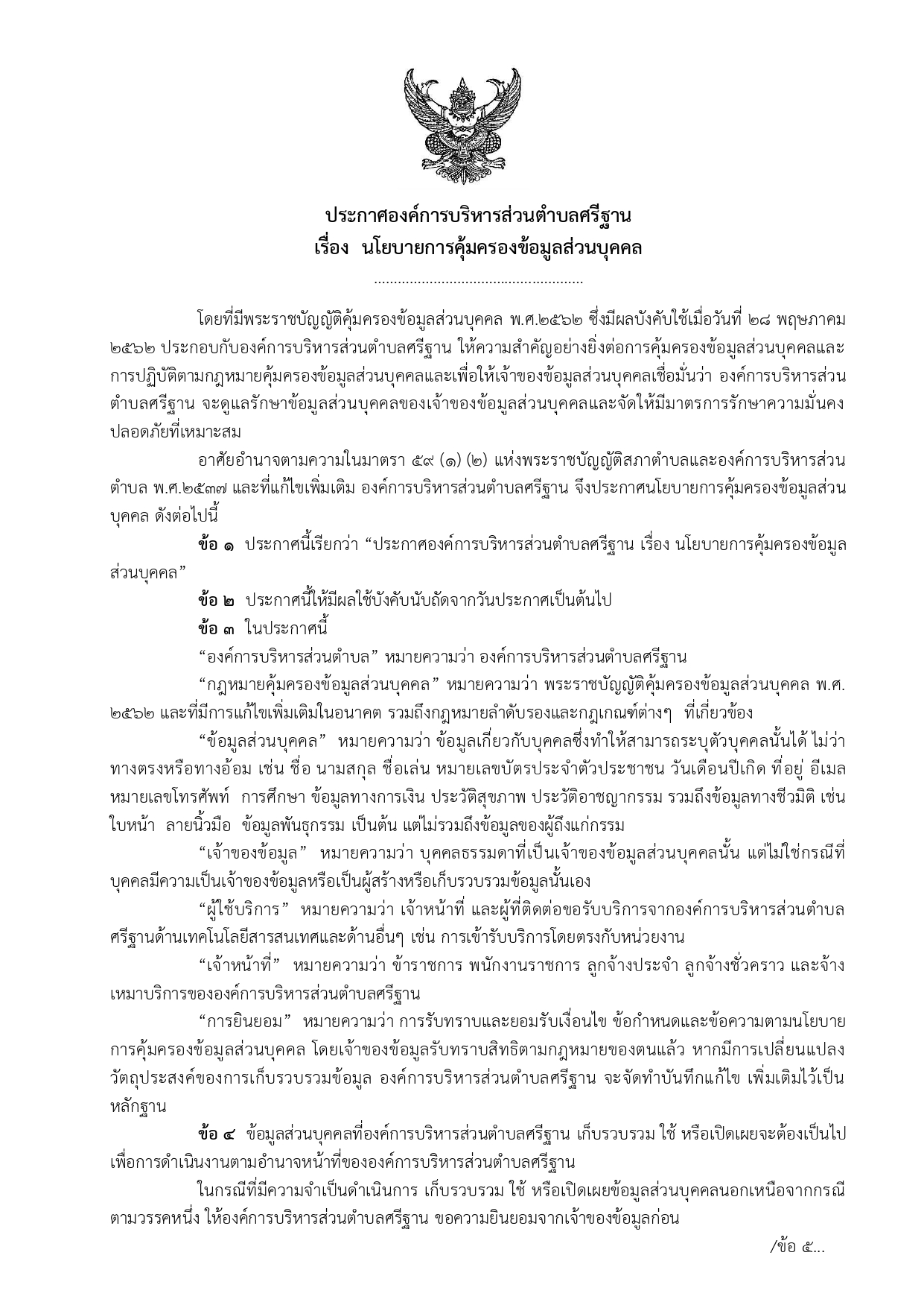 นโยบายคุ้มครองข้อมูลส่วนบุคคล