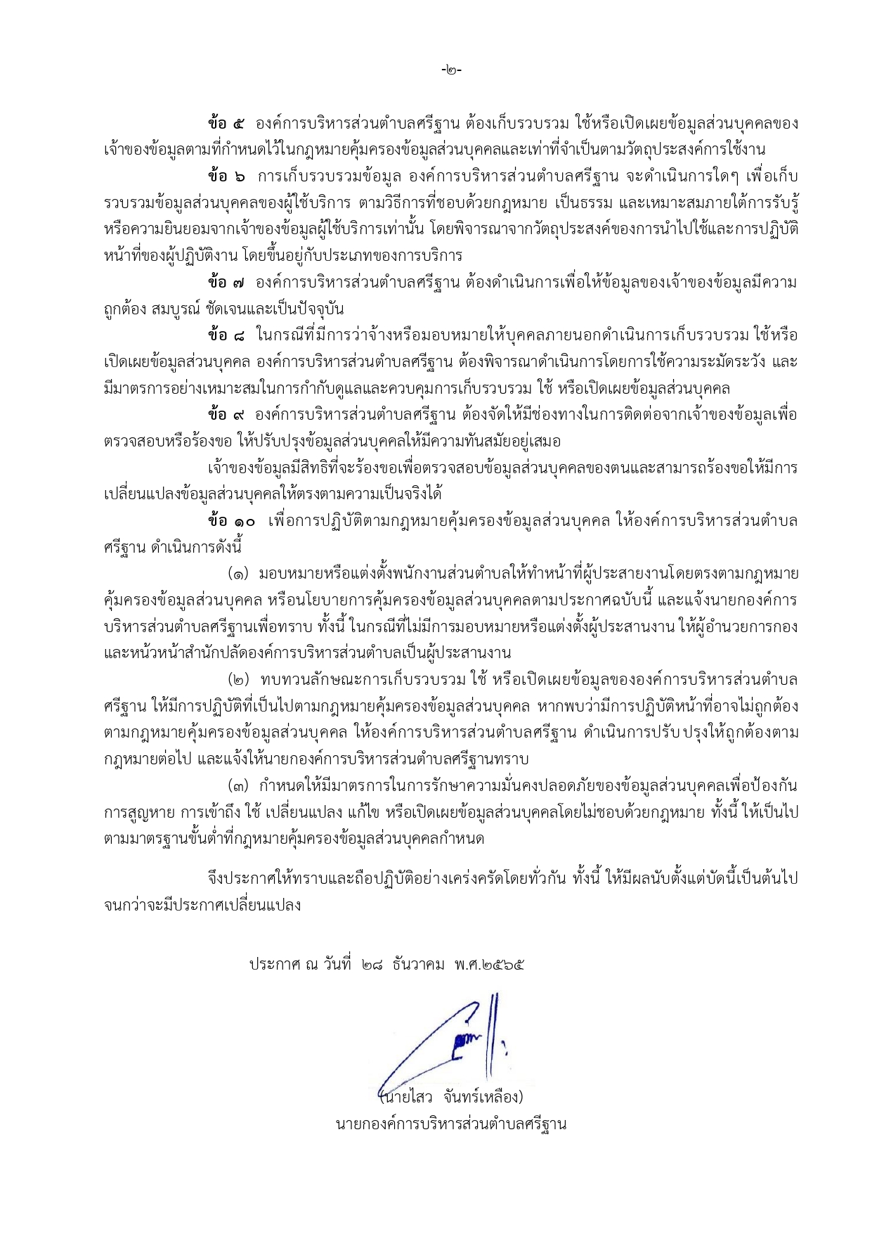 องค์การบริหารส่วนตำบลศรีฐาน ได้จัดทำ ประกาศนโยบายคุ้มครองข้อมูลส่วนบุคคล องค์การบริหารส่วนตำบลศรีฐาน อำเภอป่าติ้ว จังหวัดยโสธร เสร็จเรียบร้อยแล้ว รายละเอียดปรากฏตามเอกสารที่แนบมาด้วยนี้ จึงประชาสัมพันธ์มาให้ทราบโดยทั่วกัน