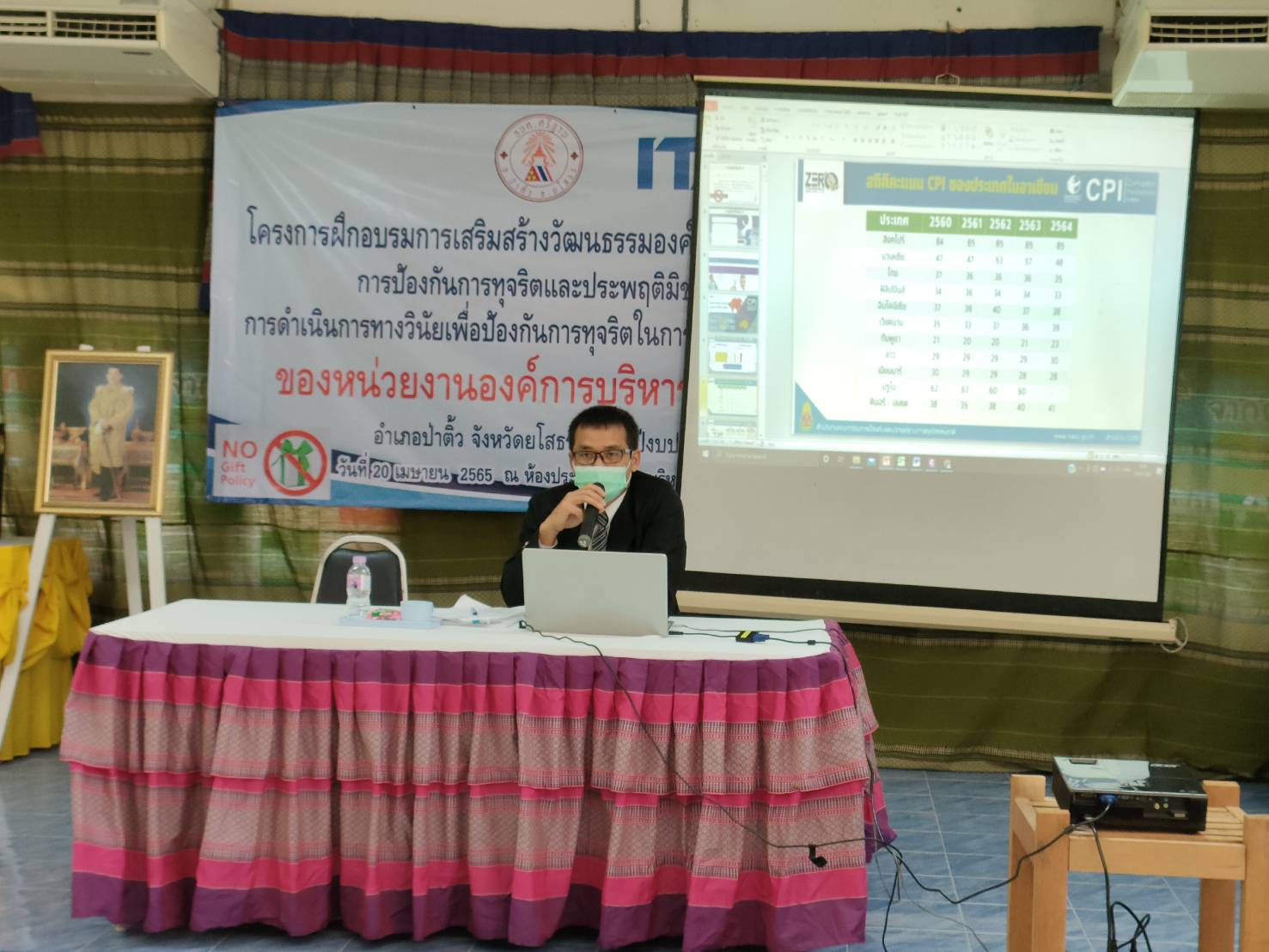 วันพุธ, 20 เมษายน 2565 12:00“วันที่ 20 เมษายน 2565 เวลา 09.00 น.-12.00 น. องค์การบริหารส่วนตำบลศรีฐาน โดย นายไสว จันทร์เหลือง นายกองค์การบริหารส่วนตำบลศรีฐาน นำคณะผู้บริหาร พนักงาน ลูกจ้างองค์การบริหารส่วนตำบลศรีฐาน ฝึกอบรมตามโครงการฝึกอบรมการเสริมสร้างวัฒนธรรมองค์กรตามมาตรฐานทางจริยธรรม การป้องกันการทุจริตและประพฤติมิชอบในองค์กรภาครัฐ การดำเนินการทางวินัย เพื่อป้องกันการทุจริตในการดำเนินงานของหน่วยงานภาครัฐ (Integrity and Transprency Assessment-ITA) ขององค์การบริหารส่วนตำบลศรีฐาน อำเภอป่าติ้ว จังหวัดยโสธร ประจำปีงบประมาณ พ.ศ.2565 ณ ห้องประชุม (ชั้นล่าง) องค์การบริหารส่วนตำบลศรีฐาน โดยมีวัตถุประสงค์เพื่อการเตรียมตัว ป้องกัน รู้ทัน ก่อนถูกชี้มูลและถูกกล่าวหาว่ากระทำความผิดฐานทุจริตต่อหน้าที่ตามกฎหมาย ป.ป.ช. โดยวิทยากรจากสำนักงาน ป.ป.ช. ประจำจังหวัดยโสธร”