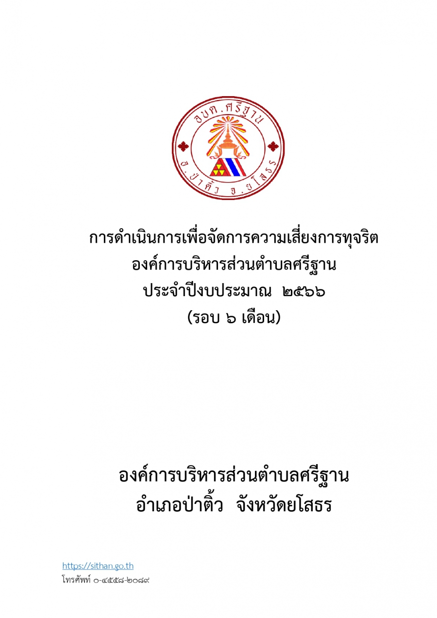 การดำเนินการเพื่อจัดการความเสี่ยงการทุจริตและประพฤติมิชอบ ประจำปีงบประมาณ พ.ศ.2566 วันจันทร์, 17 เมษายน 2566 17:08 Print Email ดาวน์โหลดเอกสาร การดำเนินการเพื่อจัดการความเสี่ยงการทุจริต ขององค์การบริหารส่วนตำบลศรีฐาน ประจำปีงบประมาณ พ.ศ.2566 (รอบ 6 เดือน) (135 Downloads) back to top