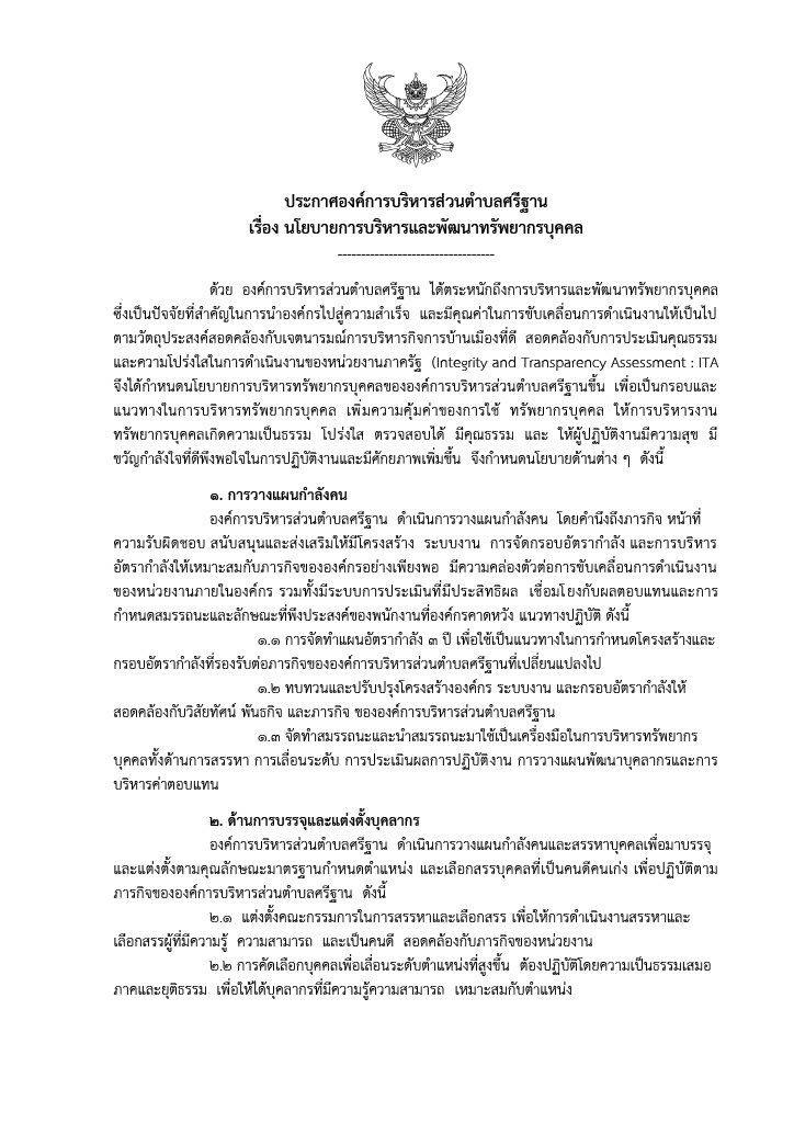 นโยบายการบริหารและพัฒนาทรัพยากรบุคคล ประจำปีงบประมาณ 2566