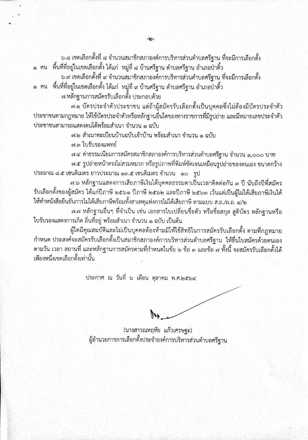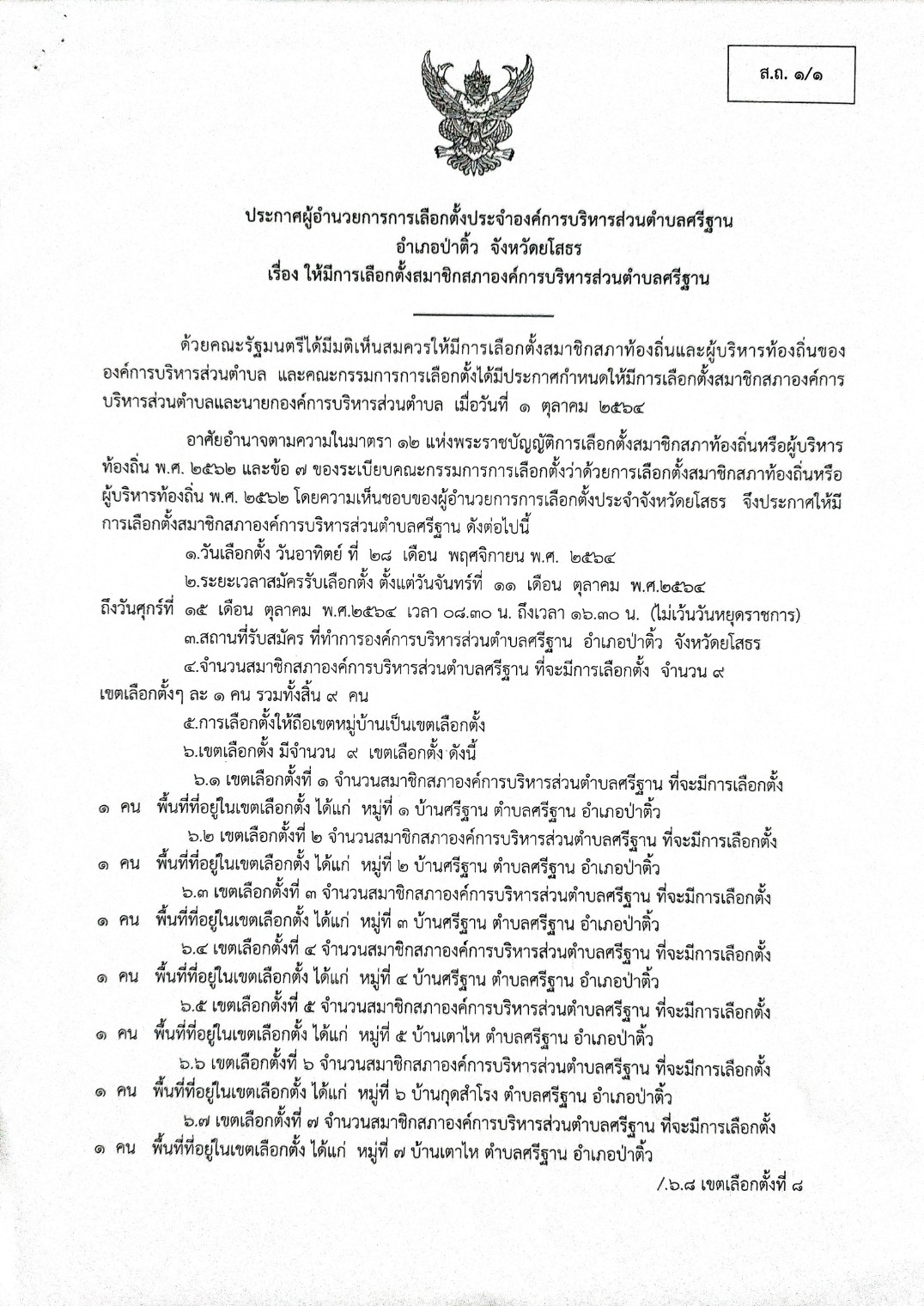 ประกาศ เรื่อง ให้มีการเลือกตั้งสมาชิกสภาองค์การบริหารส่วนตำบลศรีฐาน วันศุกร์, 08 ตุลาคม 2564 10:55 Print Email ดาวน์โหลดเอกสาร (162 Downloads) back to top